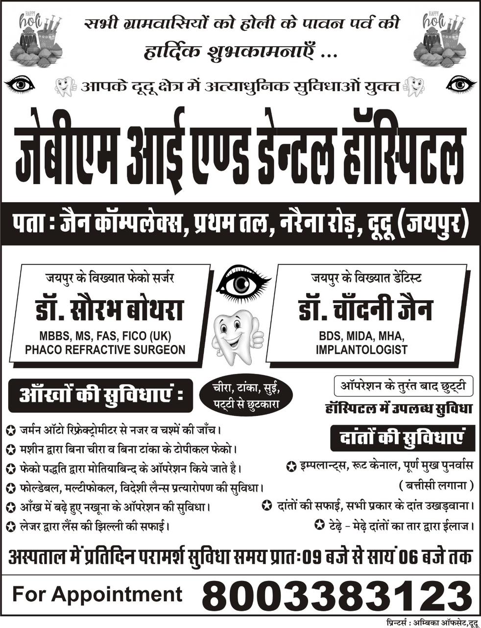 Mohan Netralaya (Unit of JBM Hospital) and Dental Care Clinic in Jaipur has a supportive and friendly staff, and the latest medical know-how to help patients. The clinic abides by all the necessary safety protocols, including Covid-19 precautionary measures. The doctor and team offer world-class care and guidance, always putting their patients first.